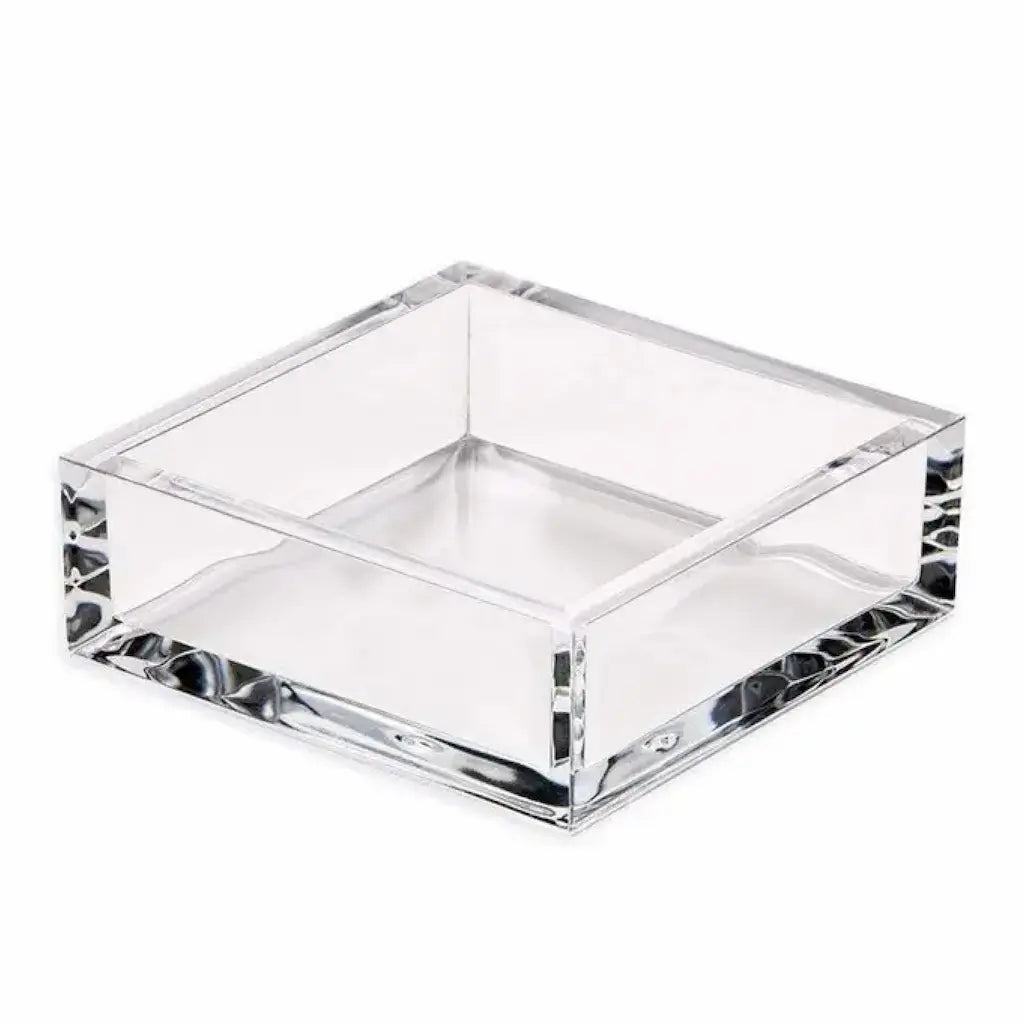 Elevate tabletop presentation with a clear acrylic cocktail napkin holder designed for standard 5″ x 5″ folded cocktail napkins. Crafted from thick, durable lucite, this sleek, modern napkin holder keeps stacks neatly in place and styles beautifully on bar carts, coffee tables, kitchen islands, and event displays. The minimalist profile showcases seasonal prints and pairs perfectly with acrylic napkin weights (sold separately) for outdoor entertaining or breezy patios. Shatter-resistant and easy to clean, it’s a proven entertaining essential for gift boutiques, event planners, and corporate gifting programs seeking polished, low-maintenance presentation.